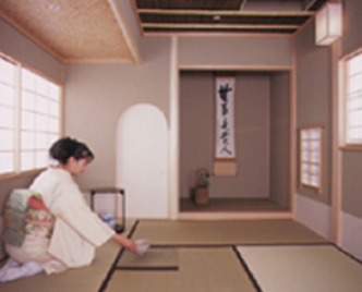 玉砂利を敷いた露地を通って茶室に向かい、つくばいで手を洗える本格的な造り。かつて花嫁修業の一つでもあった茶道を思い出しながら、和やかなひとときを過ごせる場所です。