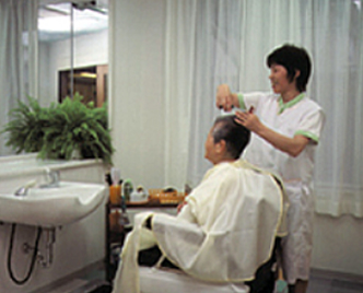 カットやひげそり、ヘアカラー、メイクも行っています。おしゃれに気をつかい、美しさを取り戻すことで、気持ちもリフレッシュ。心身の若さを保つことができ健康にもつながっていきます。