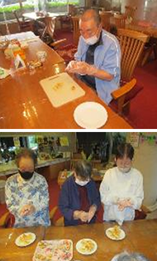 次回おやつ会を行う際も他利用者様と協力して調理に取り組み、皆様に季節を感じ美味しいと満足して頂ける行事を計画・実施して参ります。