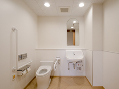 病院や認定こども園もある5階建ての医療介護の複合施設内にある介護老人保健施設では、地域の医療機関や介護事業所と連携しながら、生活の中におけるリハビリテーションを行い、高齢者の皆様に対し、地域の中での地続きの医療と介護の包括ケアを目指しています。