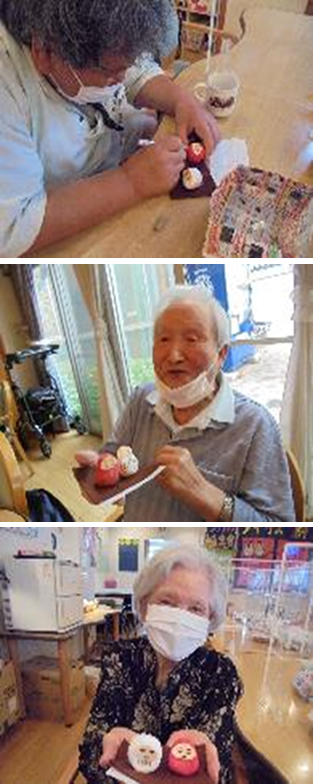本日は敬老会で紅白だるまを職員と一緒に作りました。