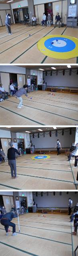 ②先攻側が的となるジャックボール(白ボール)を投げて続けて投球、次に後攻 側が投球していき、 ジャックボールに近い位置にボールのあるチームの勝ちと して得点を競いました。
