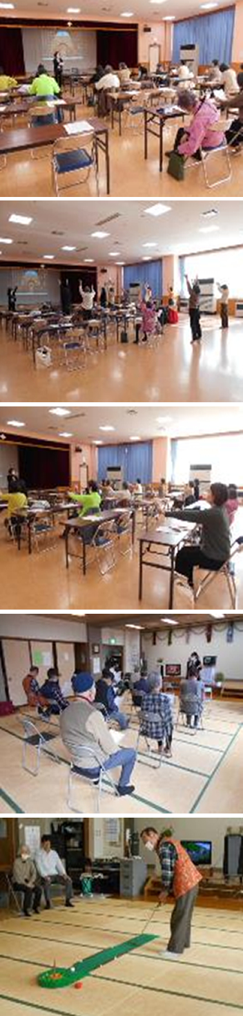 | 介護予防教室 | 運動機能セフルチェック、筋力アップ体操、レクリエーションを行いました。 | |