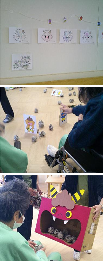 今回の豆まき会は「鬼的当て」と「豆まき」を行いました。