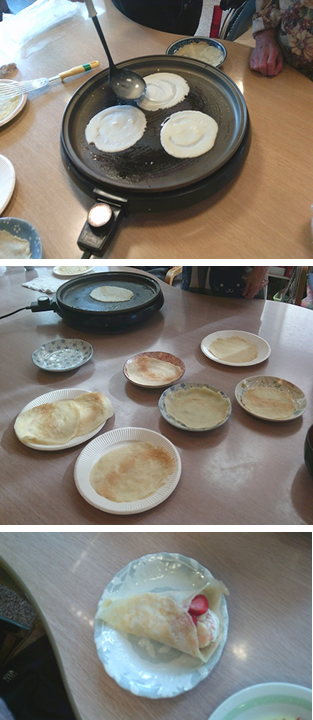 通所リハビリテーションでおやつにクレープ作りを楽しみました。(*^_^*)
