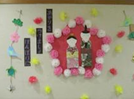 皆様で飾り付けた手作りのお雛様も通路を華やかに彩っており、みやびに一足はやく春が訪れたようです。