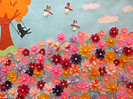 色画用紙や折り紙、お花紙を使用して、色とりどりの花を咲かせました。