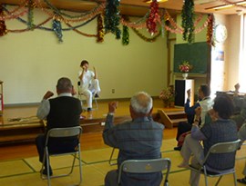 小中野保育園による手話を使った歌、踊り、利用者様と一緒に手遊びをし「パワーをもらって長生きしたい」と喜びの声が聞かれていました。