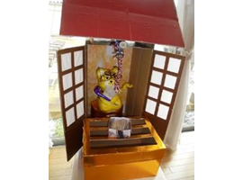 段ボール製の絵馬にそれぞれ願いごとを書いていただき、館内に建てた手作り神社に飾りました。