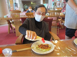 今月の誕生会では、皆さんと一緒にチヂミを作りました。