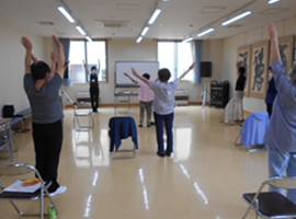 また、転倒予防教室の方では、厚生労働省監修の転倒リスクチェックシートでご自身の今の状態を確認していただいた上で、自宅でも簡単にできる下肢筋力アップ体操をご紹介しました。