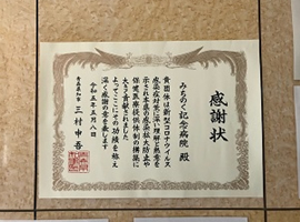 先日、三村申吾青森県知事より新型コロナウイルス対応についての感謝状を頂戴いたしました。