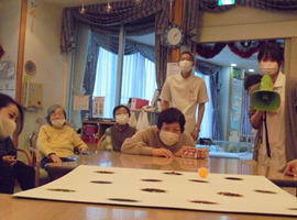次回ゲームを行う際には、利用者様の身体状況に応じてボールの大きさを選んで頂く等、簡単にゲームに参加して頂けるよう検討して参ります。